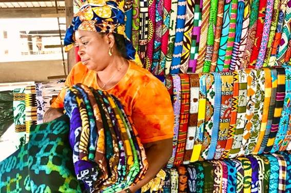 一方で、アフリカに持ち込まれた臈纈染は現地で独自に発展していきます。(これを一般に「アフリカンバティック」とよばれます。)そのサプライチェーンのなかで女性の社会復帰とアントレプレナーシップを醸成しているトーゴ共和国の社会起業家による「アフリカンバティック」も展示します。